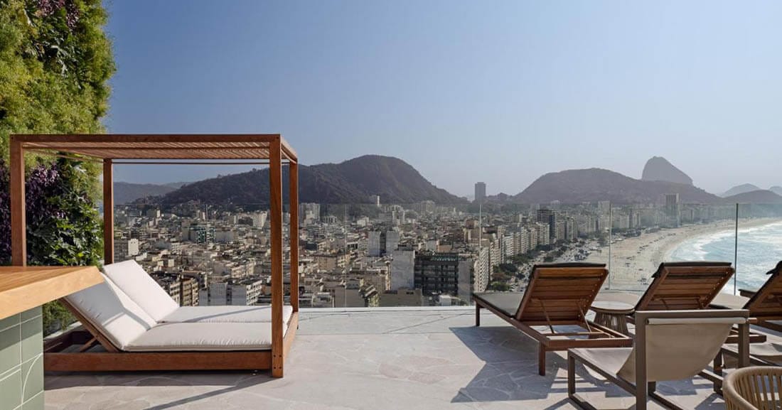 Situado al final de la playa de Copacabana, el hotel Miramar es uno de los más icónicos de la ciudad. Este hotel de cinco estrellas destaca por su piscina en la azotea desde donde verás toda la playa de Copacabana y parte de la ciudad.