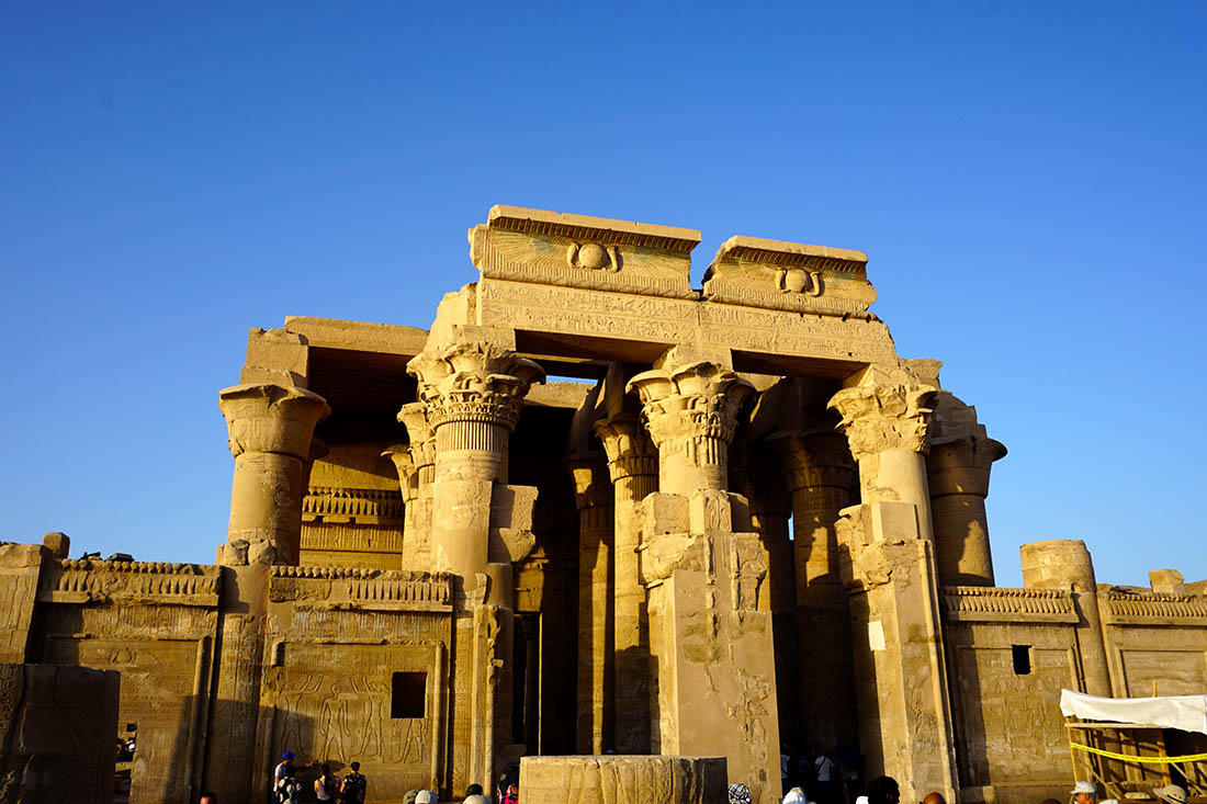 Después de visitar el templo de Horus en Edfu, y antes de llegar a la ciudad de Aswan (está a unos 40 km), el crucero realiza una parada para visitar este curioso templo en la ciudad de Kom Ombo.
